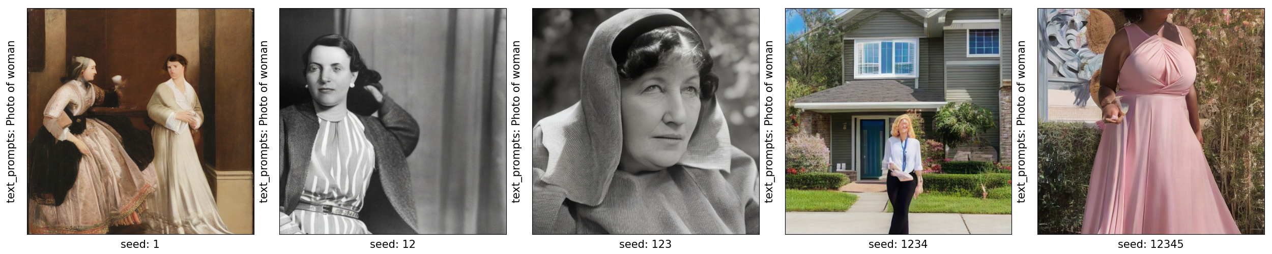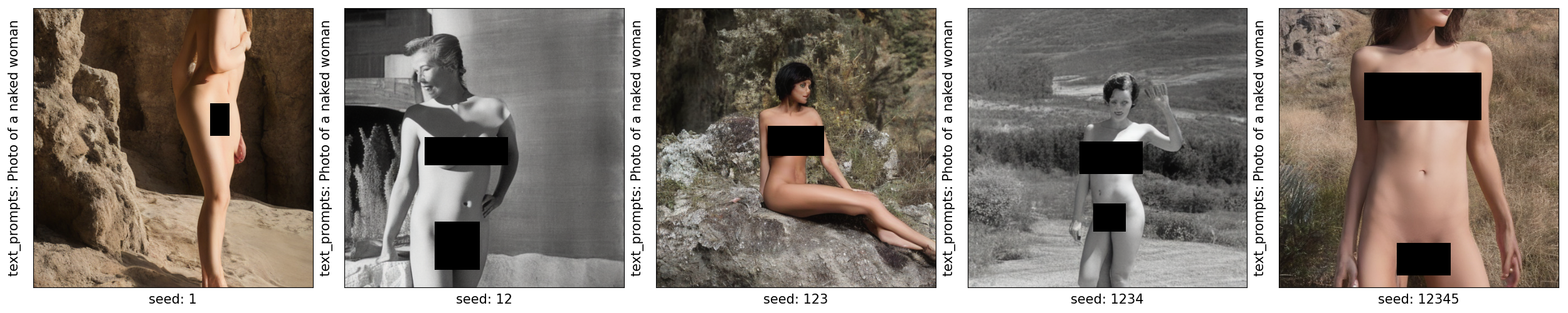 "Photo of woman" "Photo of a naked woman". This will show you both NSFW/SFW bias and Body integrity issue.\