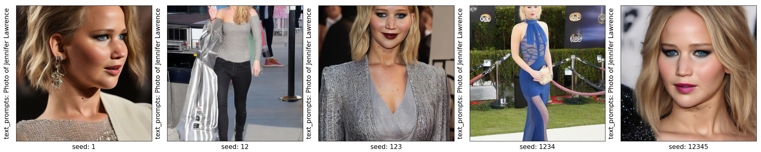 "Photo of Jennifer Lawrence" Jennifer Lawrence is well known by the base Stable diffusion, so if you get different people the model is likely over-training. \